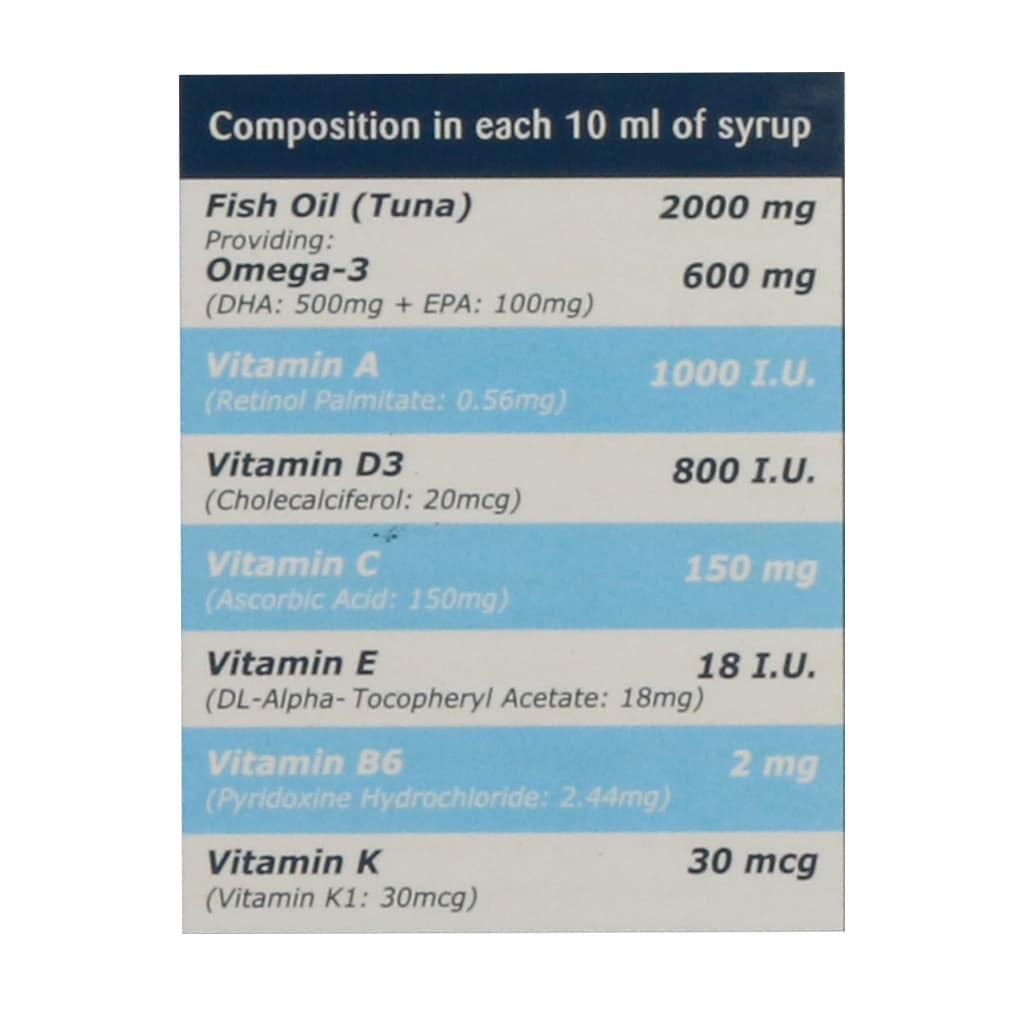 سانستول امگا ۳ حاوی 2000 میلیگرم روغن ماهی در هر 10 میلیلیتر است. از میان این مقدار روغن ماهی، 600 میلیگرم امگا 3 وجود دارد که شامل 500 میلیگرم DHA و 100 میلیگرم EPA است.